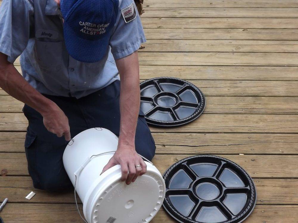 - Заполнить ведро зерном или любым другим кормом, а после закрыть крышкой.