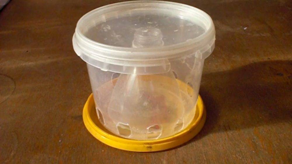- В боковой стенке ведра у самого днища прорезаются отверстия.
