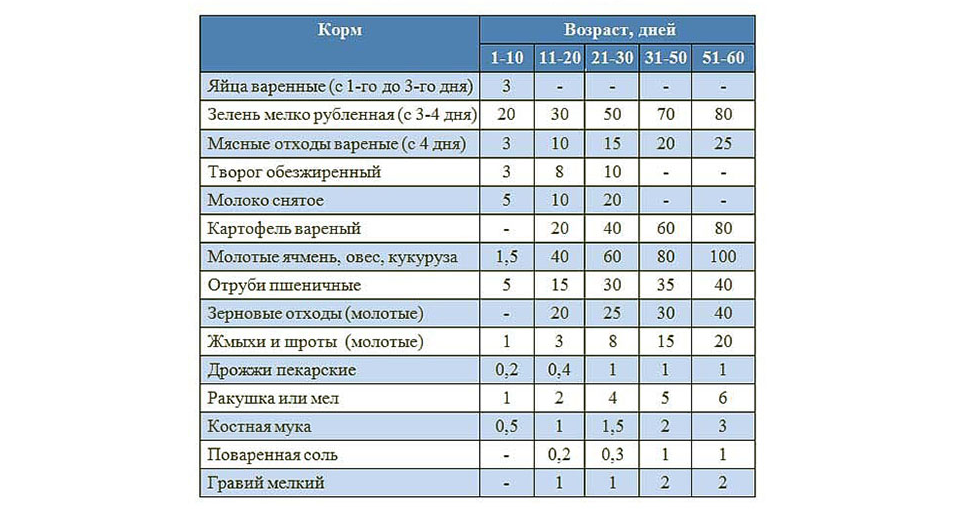 Рецепт для подрощенных цыплят в возрасте старше 40 дней