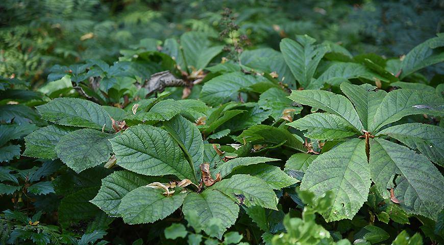 Роджерсии в теневом саду образуют плотный и устойчивый покров
