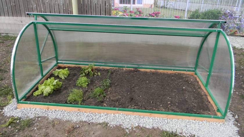 Такие укрытия строятся прямо на участке и позволяют подращивать в них рассаду до её высадки в теплицу или в открытый грунт после наступления тепла и отсутствия угрозы возвратных заморозков.