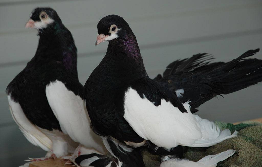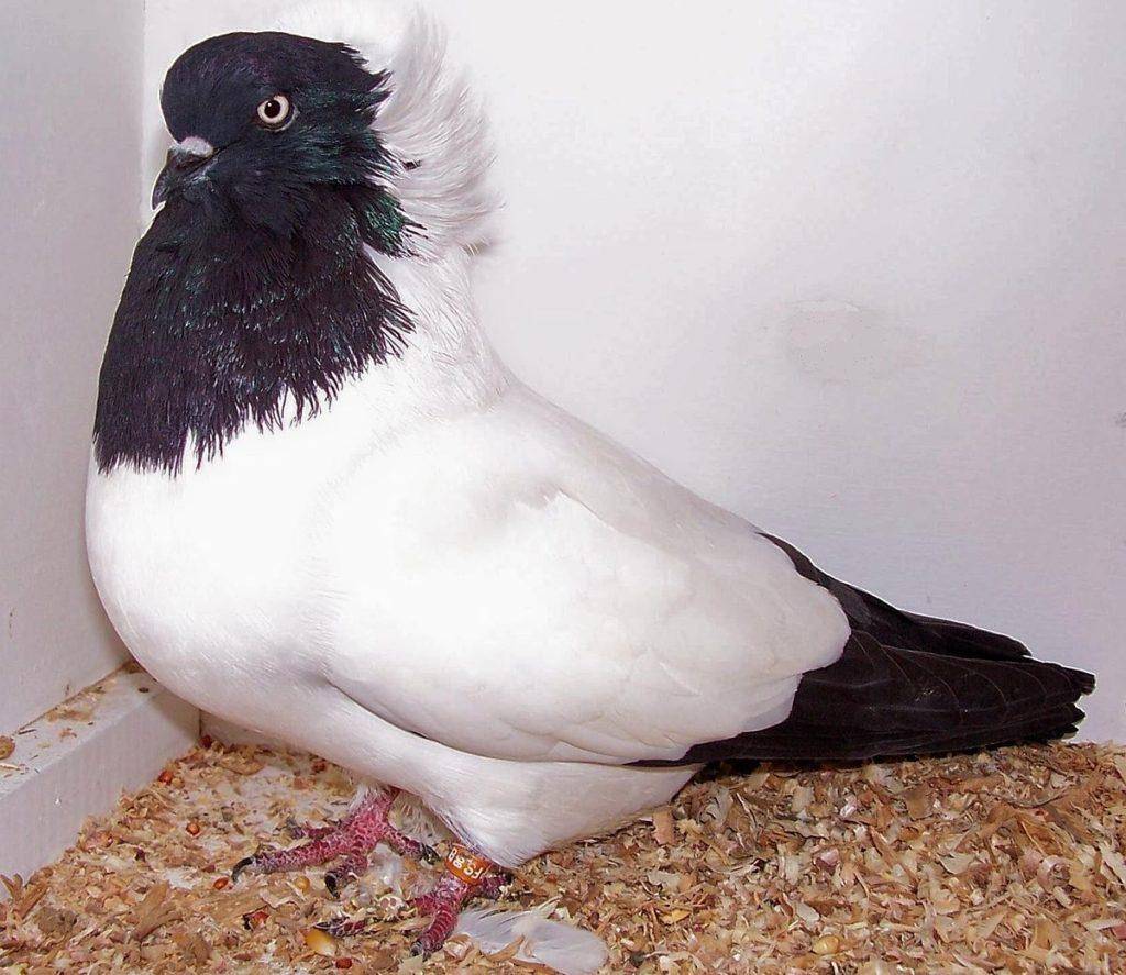Эта декоративная порода для разведения в вольерах. Окрас – черно-белый. Белого цвета – грудь, шея, чубчик, живот.
