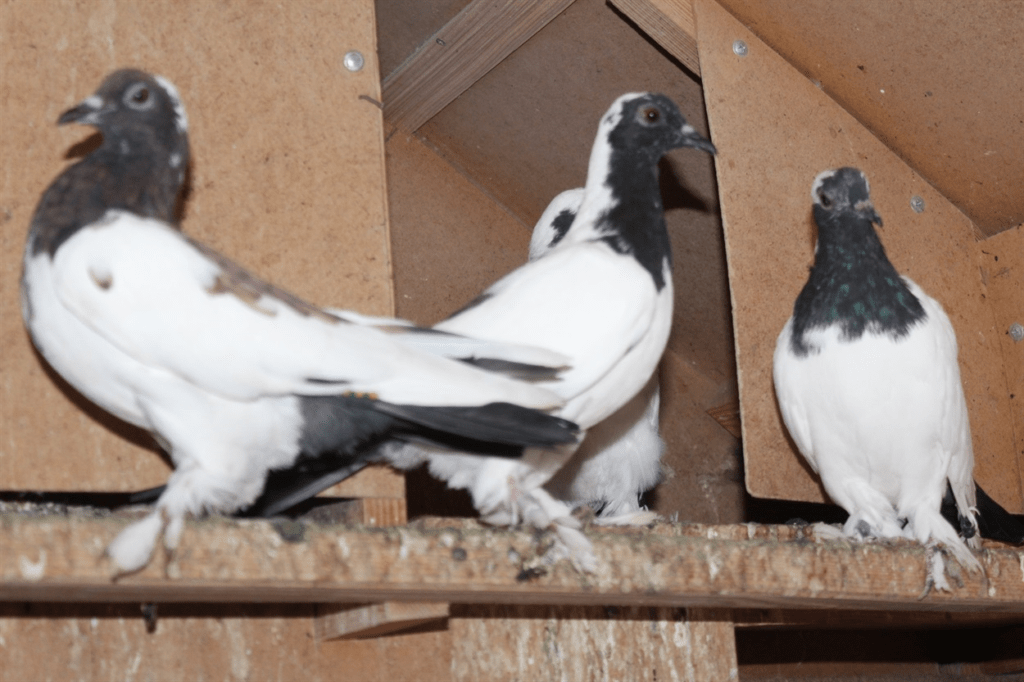 До месячного возраста голубятам почти не нужен корм – если их выкармливают родители. На второй неделе им нужна вода. Чтобы приучить малышей клевать, им с 3-4-й недели дают мелкое зерно. С 25 суточного возраста птенцы могут посещать общий вольер и совершать небольшие перелеты.