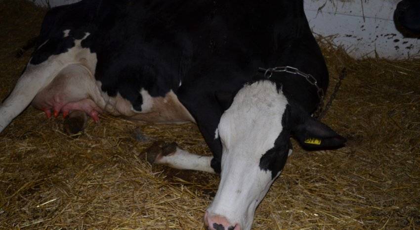- Корова подолгу находится в характерной позе – как будто собирается помочиться, но при этом выгибается и стонет.