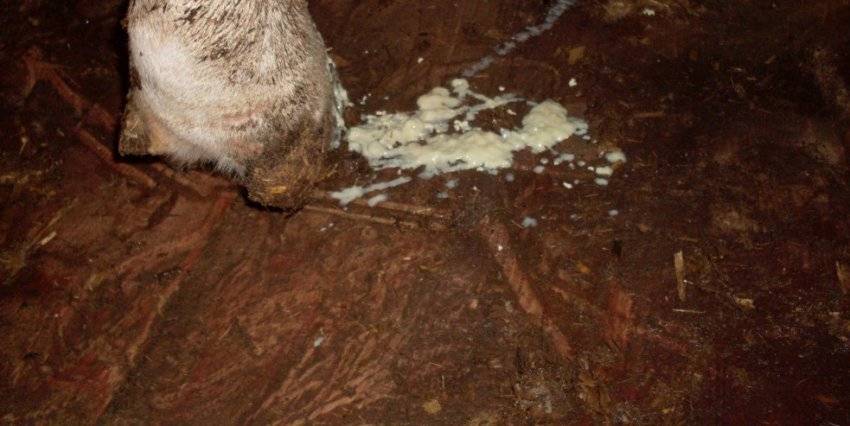 - В районе половых органов, а также в месте содержания коровы заметны серые засохшие корочки.