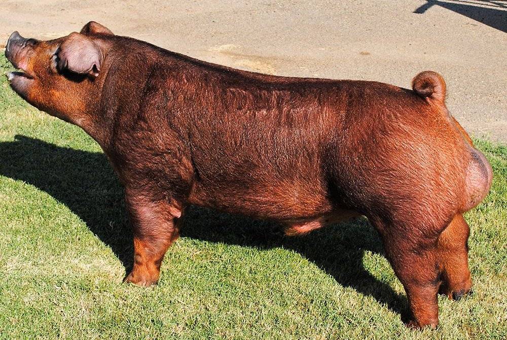 Свиньи Дюрок имеют американское происхождение. Они были выведены в 1883 году. Животные отличаются хорошей приспособленностью к пастбищному содержанию и спокойным нравом. Особенности экстерьера: