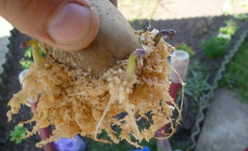 У клубней, пророщенных по правилам и в сроки, длина ростков не превышает 5 см, если же картофель достали рано или запоздали с посадкой, то ростки вытягиваются, истончаются, становятся хрупкими. Сажать такие семена сложно – длинные белые ростки переплетаются, трудно разделить их без повреждения.
