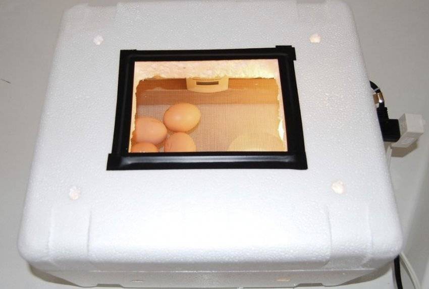 Корпус из пенопласта позволяет поддерживать постоянную температуру с помощью встроенного терморегулятора. Предусмотрено окошко для контроля за инкубацией без открытия основной крышки.