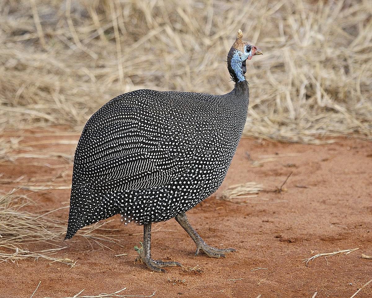 Половые различия цесарок можно определить, присмотревшись к форме и расположению гребешка.