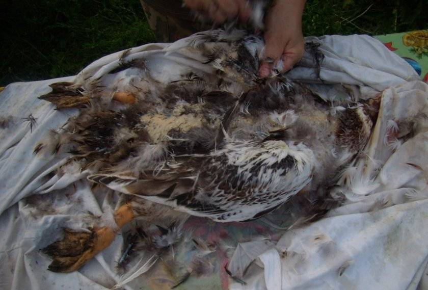 - Затем перья удаляются с грудины, спинного и шейного отделов.