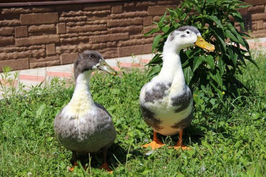 Эти утки мясной направленности, их также иногда называют Фараонами, бывают двух окрасов — голубого и красного (последний считается очень редким), однако принципиальных отличий в цвете пера у представителей породы мужского и женского пола нет. Многие фермеры советуют ориентироваться на степень яркости оперения и размеры (самцы традиционно крупнее), однако эти показатели весьма условны.