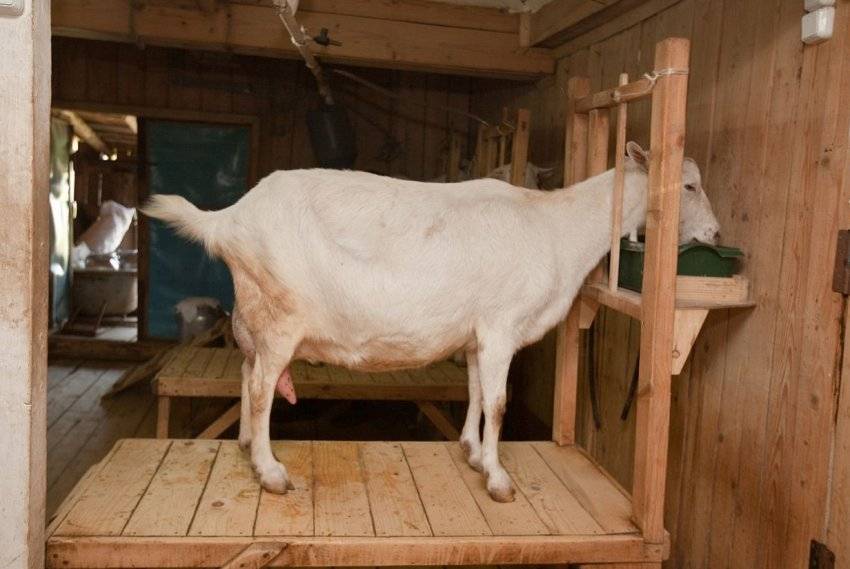 Одна из целей содержания коз – получение козьего молока. Процесс дойки козы требует отведения специального места. Под доильный станок необходимо обустроить теплую и непродуваемую зону. Доильный станок используют для того, чтобы коза не смогла перевернуть емкость с молоком. Кроме того, молодые козы часто нервничают во время дойки, а станок фиксирует части туловища и не дает совершать резких движений.