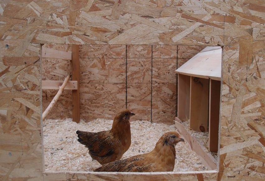 Перед входом в гнездовье должен быть порог высотой примерно 5 см, а в самом логове важно предусмотреть полочку, на которую птица будет взлетать. Если куриц в хозяйстве от трех до пяти, достаточно одного обустроенного гнезда, так как внутри птица будет находиться не более 90 минут
