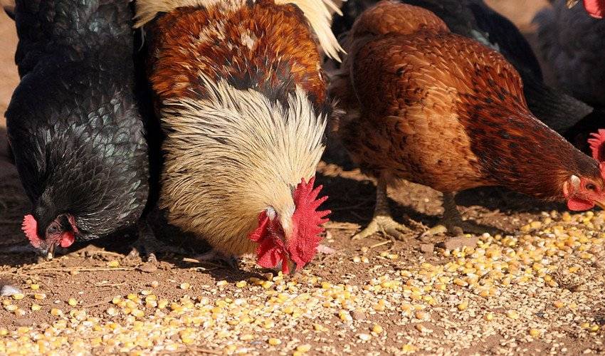 Важно! Во избежание ожирения и снижения яйценоскости пернатым рассыпают корм на пол. Собирая его, птица активно двигается, тем самым держит вес в норме.. В сутки в среднем несушки должны съедать такое количество зерна (в % от всего рациона):