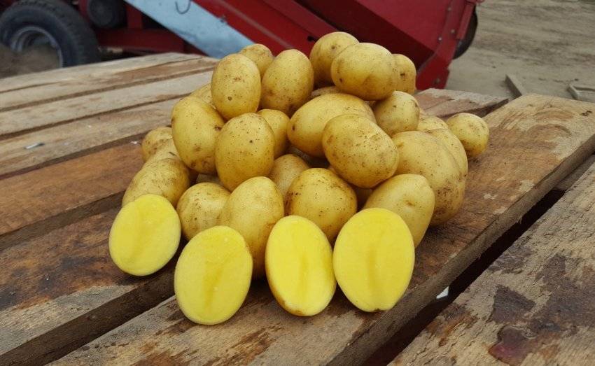 Более того, прочная и довольно толстая кожура, правильная форма, а также примерно одинаковые размеры клубней этого сорта допускают проведение с картофелем таких манипуляций, как многократная расфасовка и мойка перед продажей (именно Галу чаще всего используют в супермаркетах для продажи в мытом виде по более высокой цене)