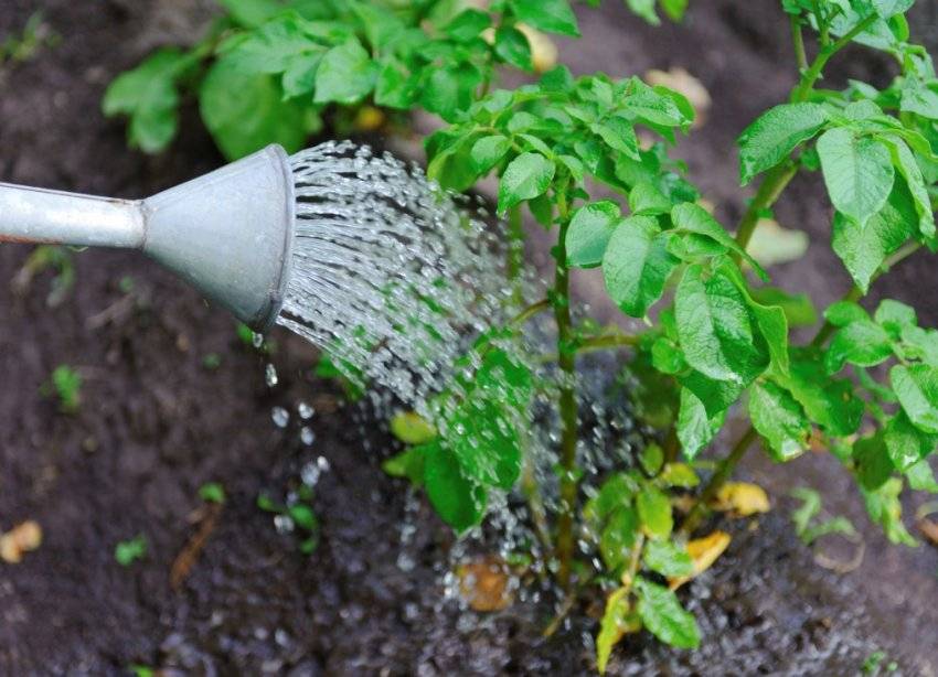 - полив картофеля по листу изредка допускается, но лучше всего лить воду в борозды между грядками.