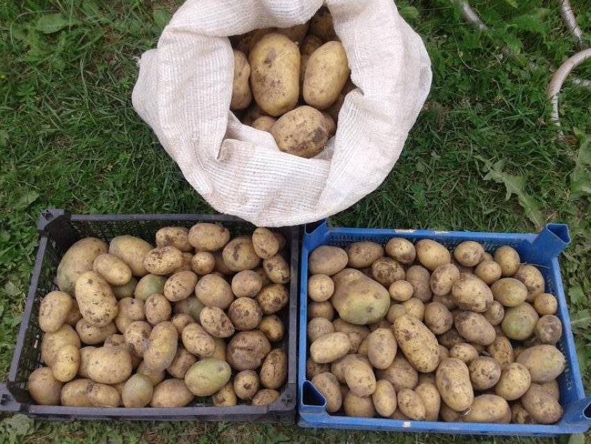 Важно! Биологическая зрелость клубней наступает в момент, когда надземная часть растения усыхает естественным образом. Однако специалисты рекомендуют скашивать картофельную ботву немного раньше, пока она ещё зелёная, после чего позволять урожаю некоторое время оставаться в земле, таким образом кожура корнеплодов становится прочнее, и их лёжкость значительно улучшается.. Гала в целом хорошо переносит транспортировку и пригодна для длительного хранения
