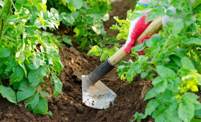 Это значит, необходимый для формирования максимального количества корнеплодов процесс фотосинтеза также протекает более интенсивно. Дополнительным преимуществом окучивания является защита посадочного материала от возможного весеннего похолодания, а также обогащение почвы кислородом. Наконец, такая манипуляция позволяет избавиться от главных вредителей грядки — сорняков.