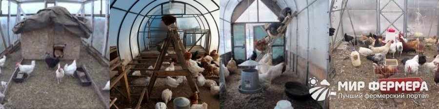 - Помещение для содержания обязательно утепляют, а кур содержат на глубокой постилке. В качестве помещения для содержания можно использовать теплицу, оборудованную системой приточно-вытяжной вентиляции.