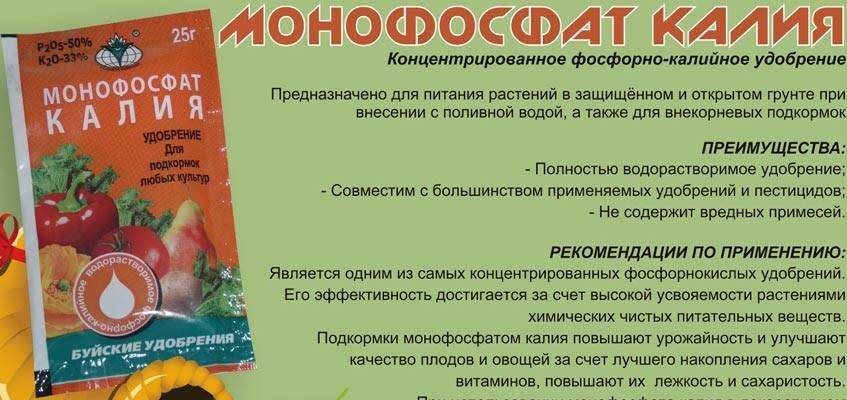 Подкормку “по листу” монофосфатом калия следует проводить в период активного появления бутонов и во время активного созревания плодов.