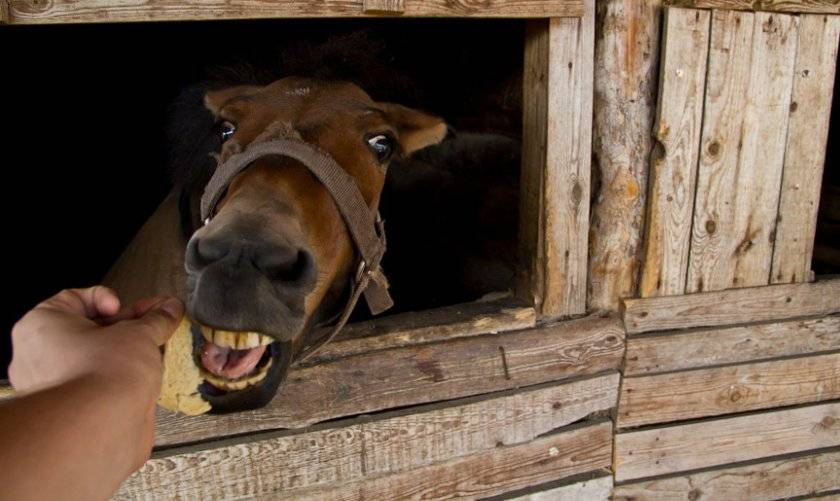 - Состояние зубов. Тщательное пережевывание пищи увеличивает поверхность воздействия пищеварительных соков. Это способствует усвояемости питательных элементов корма. Кроме того тщательное измельчение корма уменьшит риски животного подавиться и выработает необходимый объем слюны. Исходя из выше сказанного, необходимо как минимум 1 раз в год приглашать специалиста для осмотра зубов лошадей.