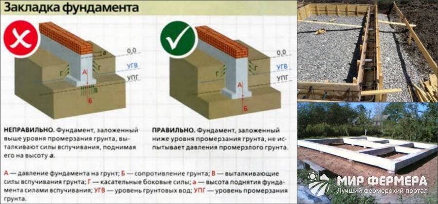 Целесообразно также предусмотреть крепкий фундамент, глубиной не меньше 0,6 метра, способный выдержать сооружение. Чтобы он не дал трещину под весом стен и крыши, специалисты рекомендуют использовать кирпич или бутовый фундамент. Поэтому для закладки основания понадобится опалубка и бетонный раствор. Для гидроизоляции фундамента применяют рубероид или толь (рисунок 5).