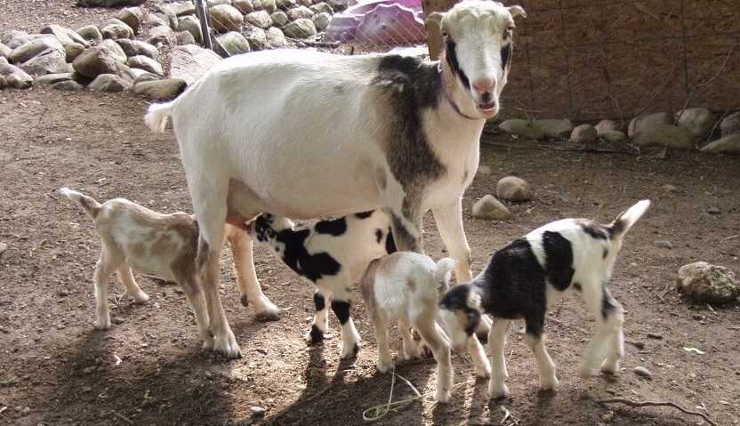 При первом окоте появляется 1-2 козленка, а в последующие – от 3 до 5 детенышей. Для получения здорового потомства самку за 1,5 мес. постепенно прекращают доить, благодаря чему в ее организме сохраняются питательные компоненты, необходимые козлятам.