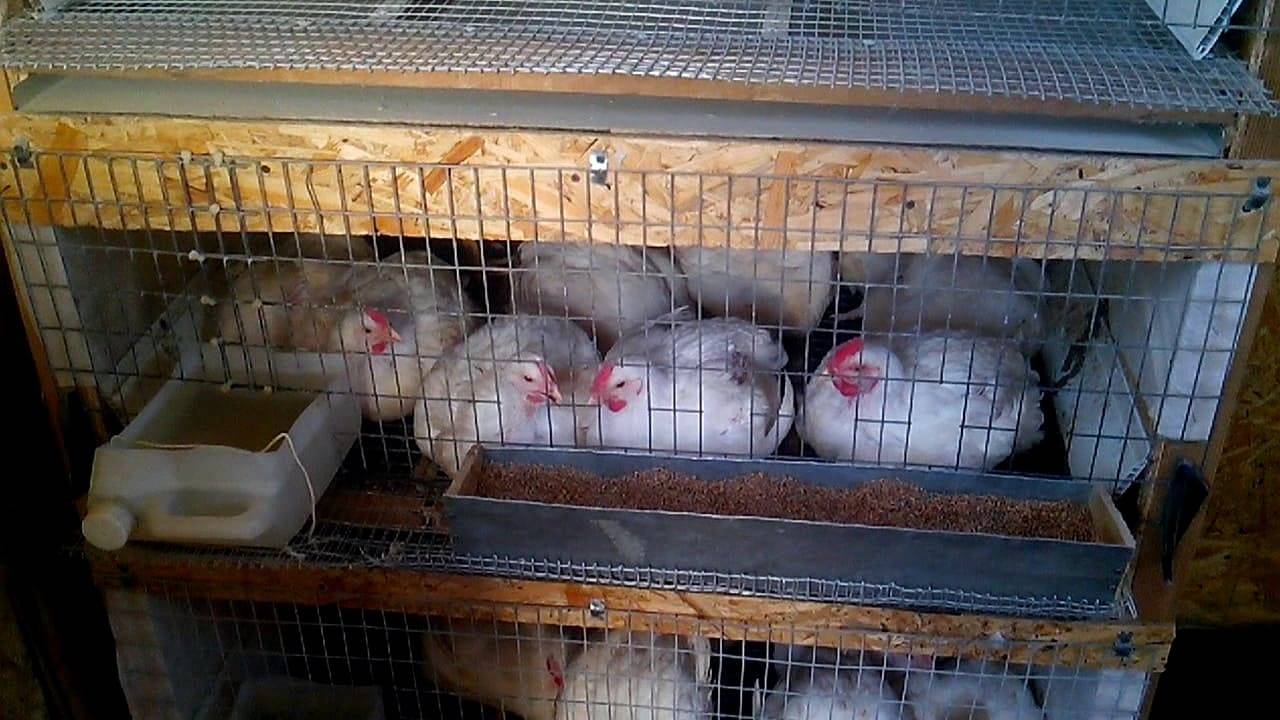 Снаружи клеток можно оборудовать желоб для сбора яиц. Залог хорошего самочувствия курочек — тщательная гигиена помещения, клеток, кормушек и поилок. Для очищения клеток необходимо отсадить все поголовье на время в другое место и провести дезинфекцию мыльной водой или раствором перманганата калия. Затем клетки просушивают при помощи строительного фена. Чтобы защитить поголовье от паразитов необходимо в каждую клетку поставить ящики с золой и гравием.