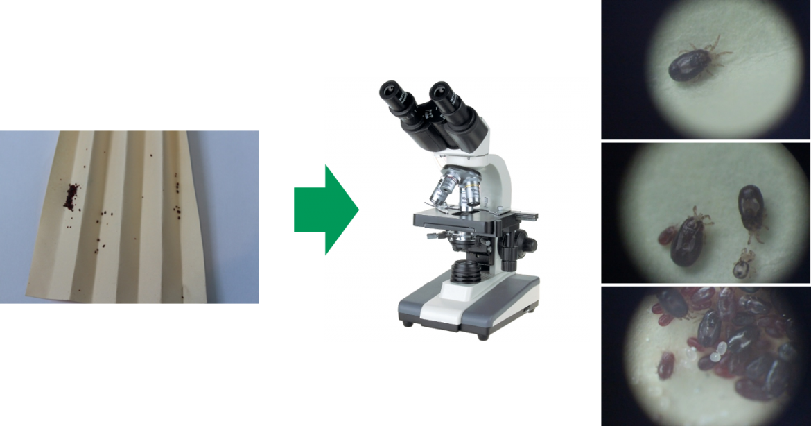 Клинические симптомы, раздражение у работников фермы, расстановка ловушек для идентификации куриного клеща.