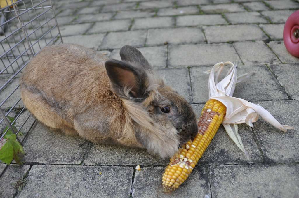 В остальное время, во избежание развития ожирения и других патологий, доля маиса в рационе кроликов не должна превышать 10–15% от общего объёма пищи.