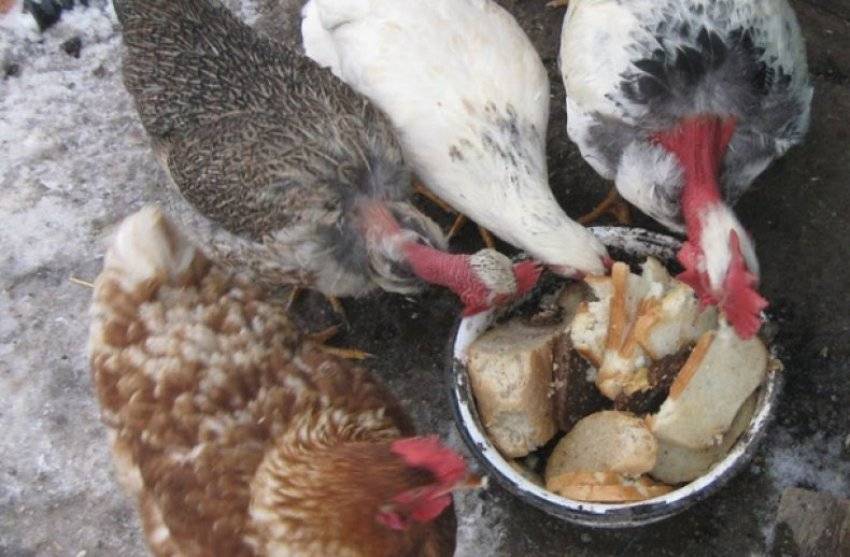 При кормлении особенно опасен чёрный хлеб, так как в него добавляется большая порция дрожжей и соли, и он имеет высокую кислотность. Присутствие не усваиваемых ингредиентов может вызвать тяжёлое брожение в желудке, что негативно отразится на яйценоскости кур.