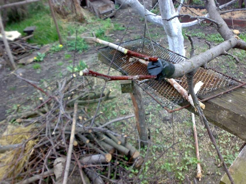 - Обычно высаженный саженец — это просто прутик, необходимо сразу укоротить его на длину стандартного карандаша. Делайте косой срез над почкой и обязательно его сразу изолируйте.