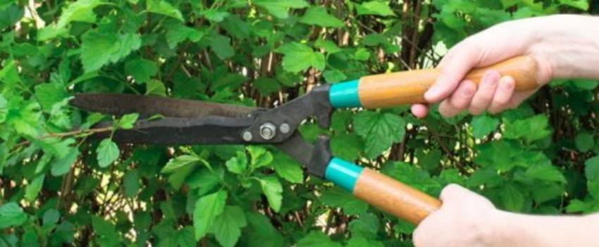 - крупные ветки, находящие вдоль ряда, обрезают наполовину;