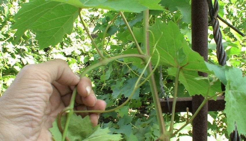 Усики, отбирающие часть соков и энергии у растения, можно удалять только на подвязанных лозах, иначе им нечем будет держаться за опору. Отщипывание проводят у самого основания.