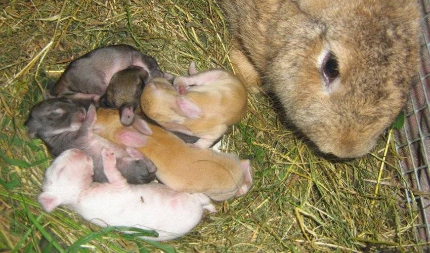 Брать на руки молодняк только что появившийся на свет категорически запрещено, в противном случае крольчата приобретают чужеродный запах, что может спровоцировать агрессию самки. При необходимости осмотра малышей нужно надеть перчатки, а чтобы мать их приняла, крольчат следует натереть пухом самки.