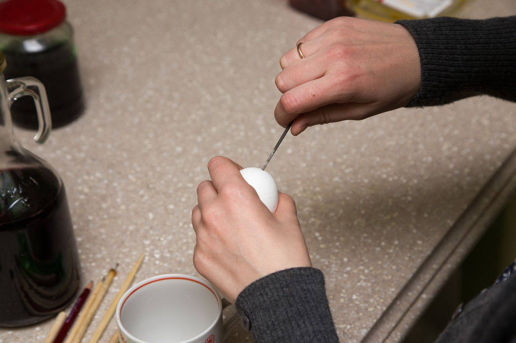 - Содержимое яйца выливается через небольшое отверстие, проделанное толстой иглой. Рекомендуется прокалывать скорлупу с двух сторон. Шприцом в скорлупу вводится небольшое количество горчицы или острого перца, смешанное с водой так, чтобы получилась кашица. Отверстия в скорлупе зажимаются, а затем обманка встряхивается. Так, содержимое равномерно распределиться по стенкам. Обманки необходимо подкладывать в течение нескольких дней в гнезда. Такое яйцо курица будет расклевывать, но вкус ей не понравится.