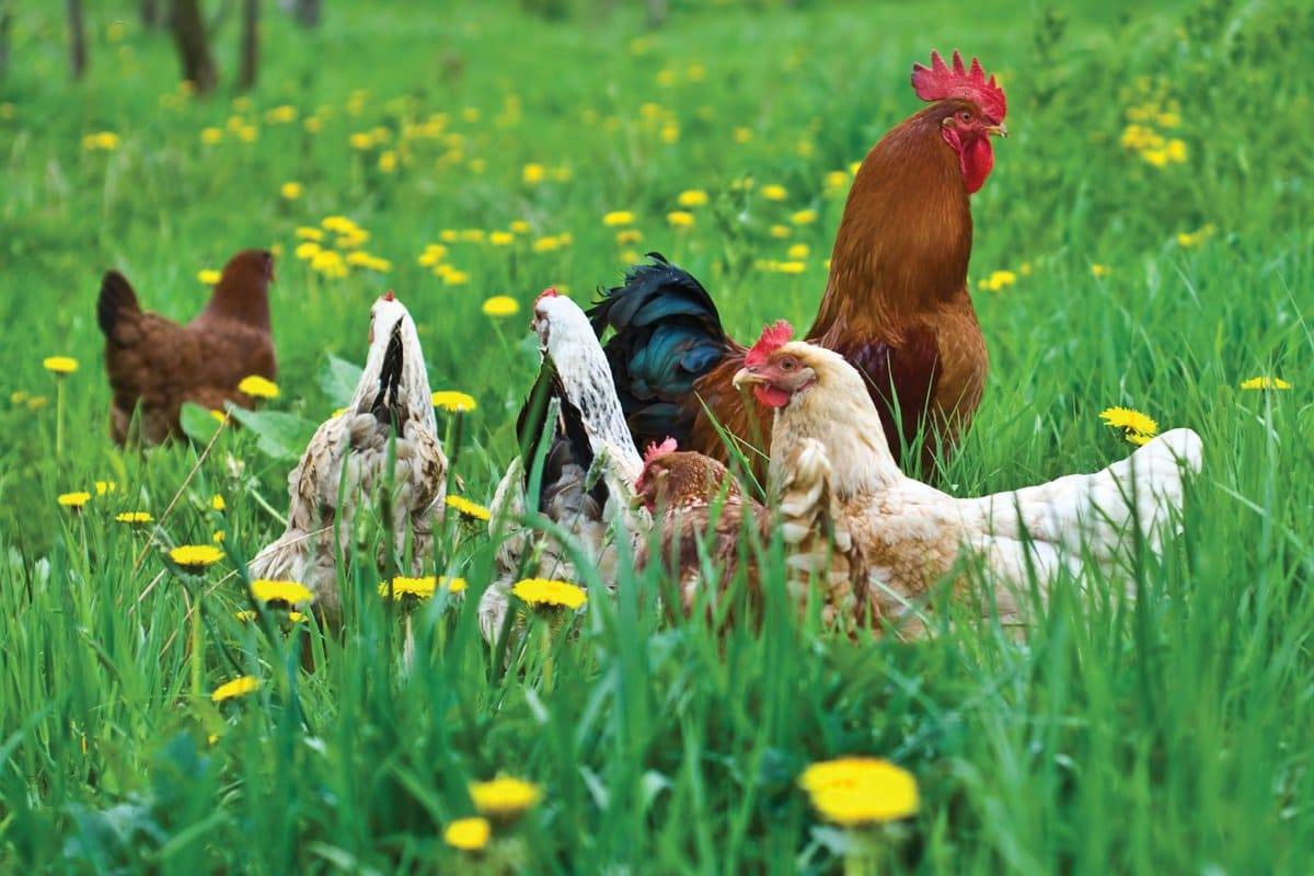 Летом куры-несушки должны быть ежедневно на свободном выгуле. Примерно половину рациона в теплое время года должны составлять сочные зеленые корма.