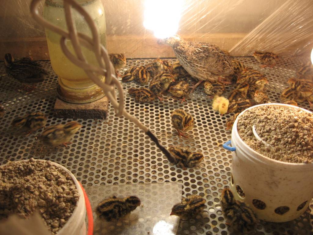 - естественное нахождение воды под ногами, позволяющее перепелятам быстро научиться пить;