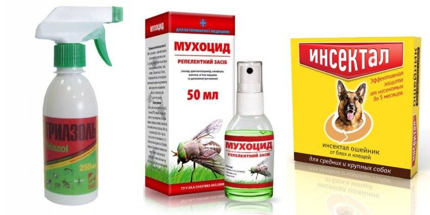 В холодное время года препараты применяют в виде различных спреев или порошков. Очень распространёнными считаются такие спреи, как Триазоль, Мухоцид и порошки Инсектал. Обрабатывают животное по всему туловищу. Препарат следует наносить на здоровую сухую поверхность в места, которые будут недоступны для слизывания.