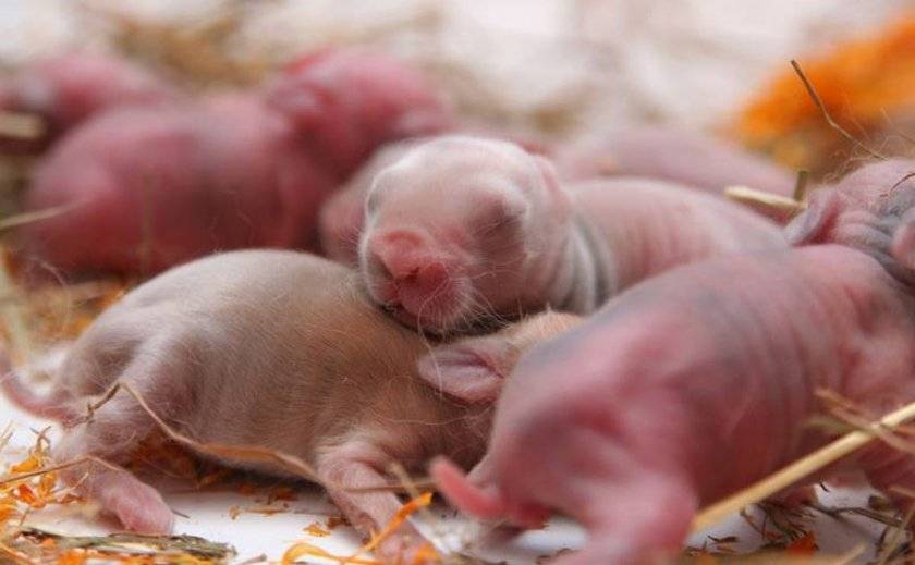 В первую очередь после окрола нужно аккуратно осмотреть всех малышей. Часть из них рождаются мертвыми. Если есть возможность, особей реанимируют, в противном случае их следует убрать из клетки, чтоб не спровоцировать стресс у крольчихи