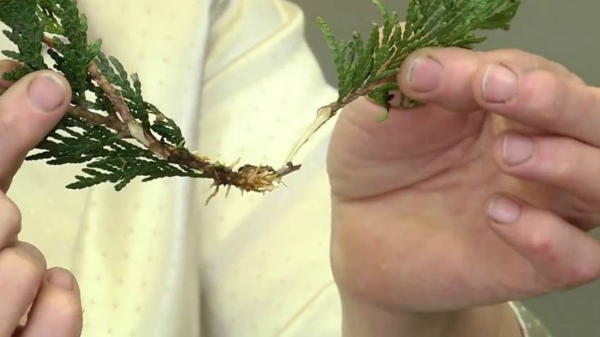 В августе все еще можно черенковать хвойники, как и некоторые другие декоративные кустарники. На сильных побегах выбираем зеленые веточки длиной не более 10 см. Отламываем с «пяточкой», ножом немного расщепляем побег, примерно на 0,5 см. срез обрабатываем Корневином или Гетероауксином. Заглубляем черенки на два-три сантиметра в смесь торфа и песка (1:1). И устраиваем им мини-парник.