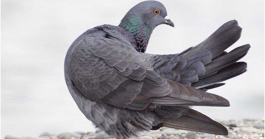 Для голубей, обитающих в городских условиях, характерно большое разнообразие окрасов. Внешнее описание Сизого голубя таково:
