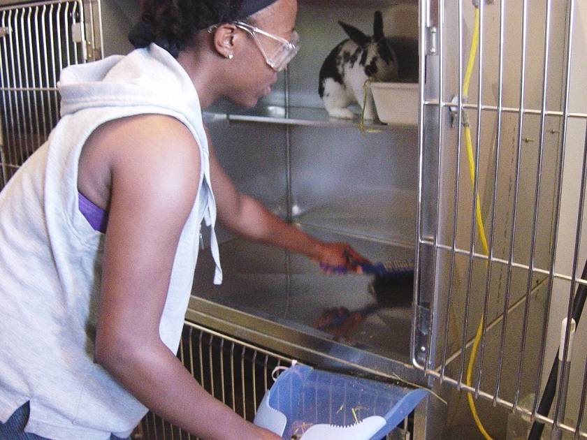 Опытные кролиководы советуют, что нужно провести уборку в клетке после того, как крольчата начали выходить из гнезда. Следует отсадить крольчат из клетки, убрать из гнезда пух, весь инвентарь продезинфицировать. После настелить на пол клетки в зоне маточника свежее сено.