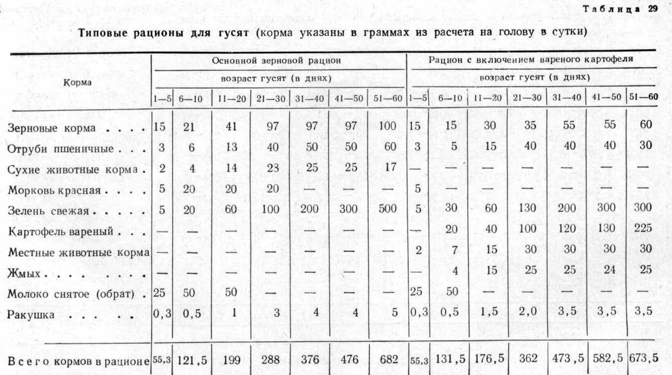 Нормы кормления и типовые рационы для гусят