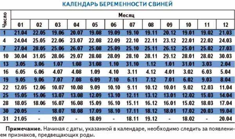 На рисунке 3 приведена таблица беременности свиней, которая поможет определиться со сроком опороса.