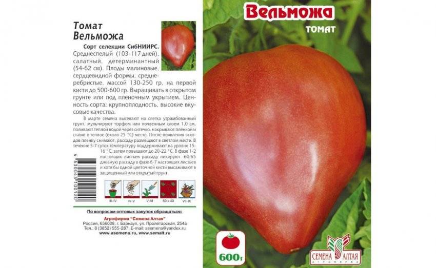 Плоды томата Вельможа гордость ученых СИБНИИРС − старейшего института Сибири. Благодаря их трудам дачники выращивают в своих теплицах томаты Вельможа весом до 800 г, а то и 1000 г.