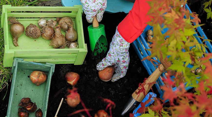- Луковицы гиацинтов и тюльпанов выкапывают каждый год, когда полностью пожелтеют листья.