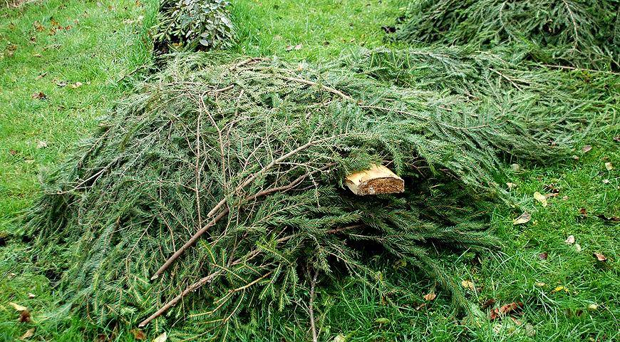 Также посадки можно замульчировать сухим торфом, а сверху использовать лапник для укрытия.