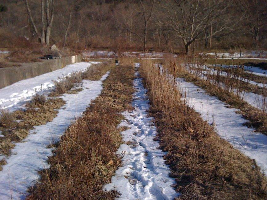 Также надо проделывать канавки, отводить ручьи и застоявшуюся воду, чтобы обеспечить корням дыхание.