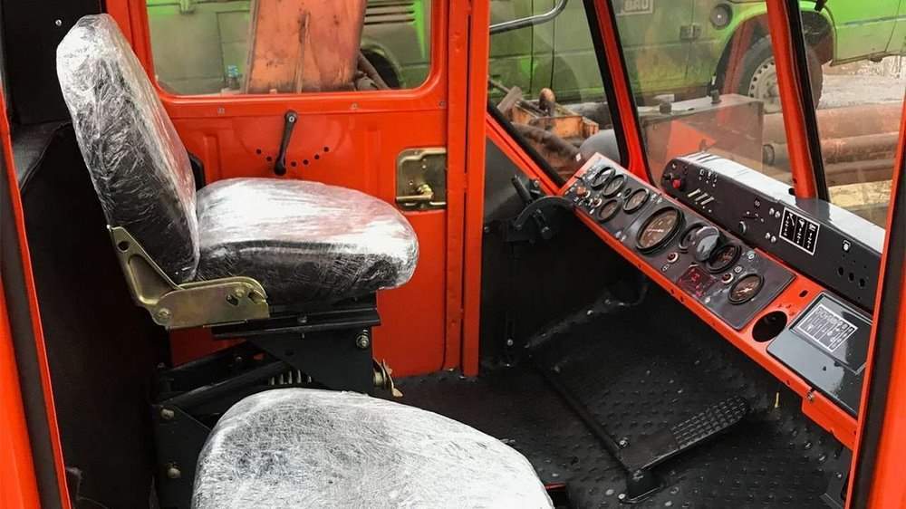 Оба сидения регулируются по наклону спинки и расстоянию до приборной панели. Вентилируется кабина посредством естественной циркуляции воздуха через открытые боковые окна. Комфорт и тепло в салоне поддерживает обогреватель, контрольные и регулировочные приборы находятся рядом с трактористом, не создают помех для доступа. Отделка кабины практична, хорошо изолирована от посторонних шумов и пыли, а также отлично сохраняет тепло.